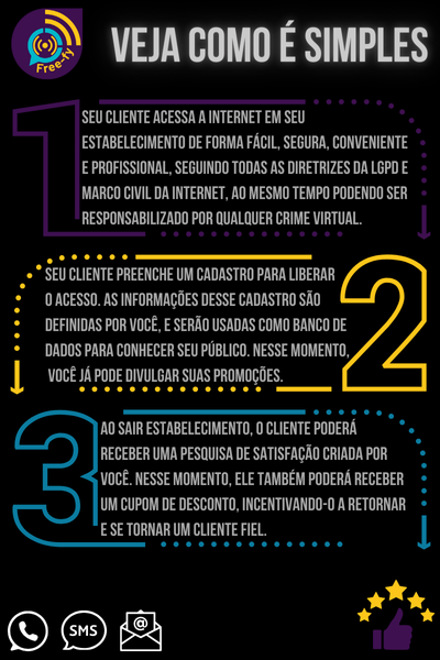 Com nossa solução de hotspot corporativo, você desbloqueia uma gama de recursos que transcendem o simples fornecimento de acesso seguro e profissional à internet, elevando a experiência tanto para você quanto para seus clientes.